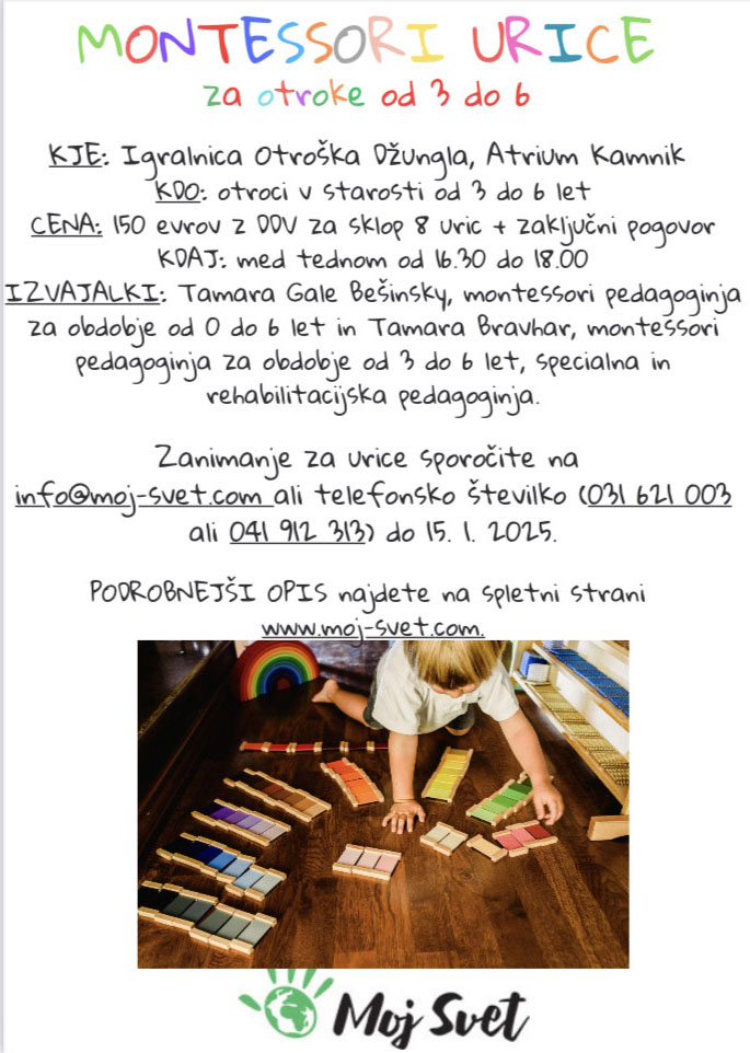 Tamara Bravhar - mamica, profesorica specialne in rehabilitacijske pedagogike in montessori pedagoginja za obdobje od 2,5 do 6 let. Po nekaj letih delovnih izkušenj se je navdušila nad montessori pedagogiko, katere elemente pri svojem delu s pridom povezuje in dopolnjuje s specialno pedagoškimi pristopi pri delu z otroci z različnimi primanjkljaji.