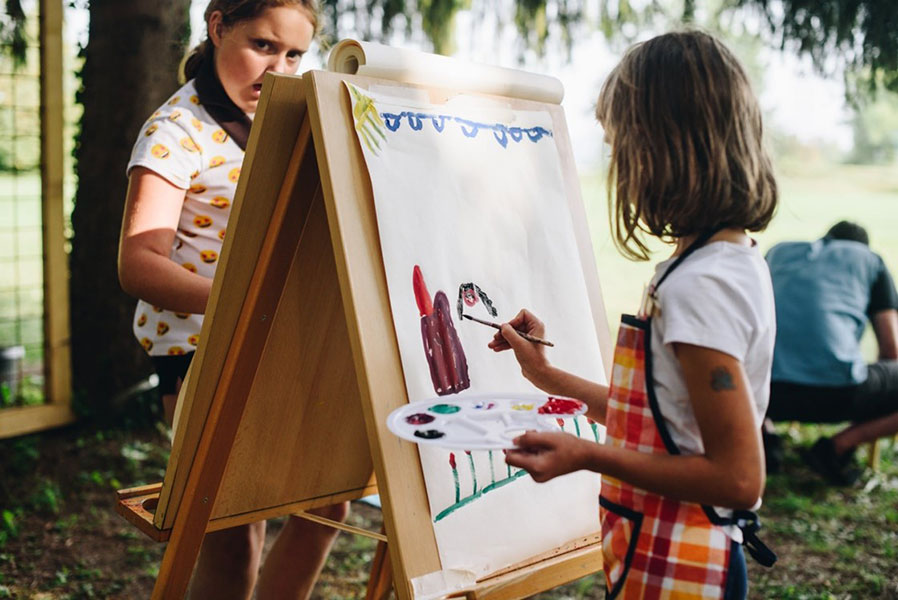 Letošnje leto so člani KPŠ pripravili prostor v gozdičku pod Mladinskih centrom, kjer smo postavili svoj kotiček montessori in tako razveselili najmlajše obiskovalce. Otroci so imeli priložnost rokovanja z osnovnejšimi materiali montessori iz vseh področij. Tako so uživali v zaznavnih materialih, materialih iz vsakdanjega življenja, prebiranju knjigic, slikanju, .... na koncu nam je uspela tudi mini slikarska razstava :)