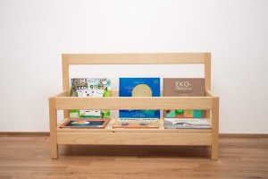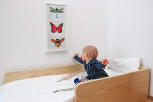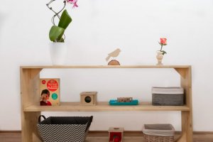 Z zavedanjem vega tega in na podlagi izkušenj z lastnimi otroki, smo razvili idejo o Montessori sobici. Gre za pohištvo, ki je oblikovano in narejeno po načelih, ki jim je sledila Maria Montessori. Omare so dovolj nizke, da si otrok lahko oblačila izbira sam. Postelja je nizka, da lahko otrok takoj ko je tega sposoben samostojno vstaja oziroma gre spat. Police za materiale, knjige oziroma druge otrokove pripomočke so prav tako narejene po merah, da otrok stvari samostojno lahko doseže. V sobici je nizka previjalna miza in veliko ogledalo, ki je eden od zelo pomembnih elementov v Montessori okoljih, saj še posebej spodbujajo otrokov razvoj v najnežnejšem obdobju.