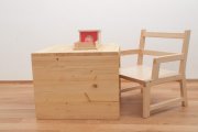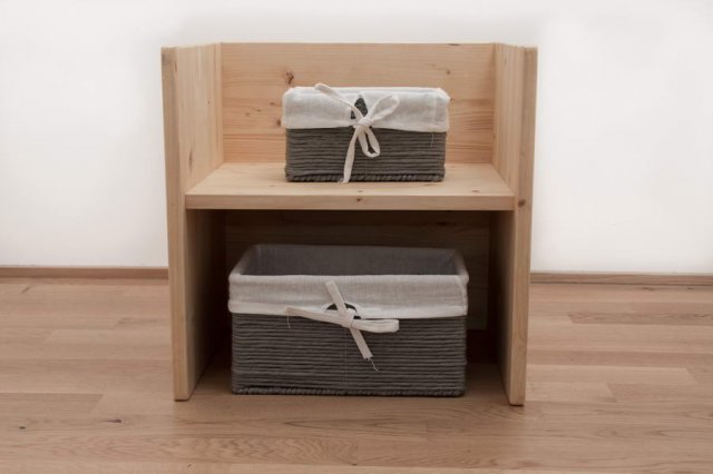 Z zavedanjem vega tega in na podlagi izkušenj z lastnimi otroki, smo razvili idejo o Montessori sobici. Gre za pohištvo, ki je oblikovano in narejeno po načelih, ki jim je sledila Maria Montessori. Omare so dovolj nizke, da si otrok lahko oblačila izbira sam. Postelja je nizka, da lahko otrok takoj ko je tega sposoben samostojno vstaja oziroma gre spat. Police za materiale, knjige oziroma druge otrokove pripomočke so prav tako narejene po merah, da otrok stvari samostojno lahko doseže. V sobici je nizka previjalna miza in veliko ogledalo, ki je eden od zelo pomembnih elementov v Montessori okoljih, saj še posebej spodbujajo otrokov razvoj v najnežnejšem obdobju.